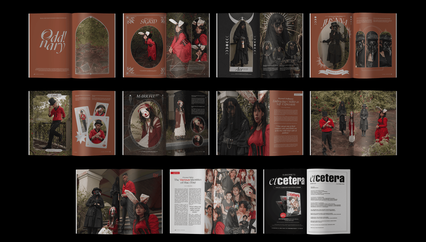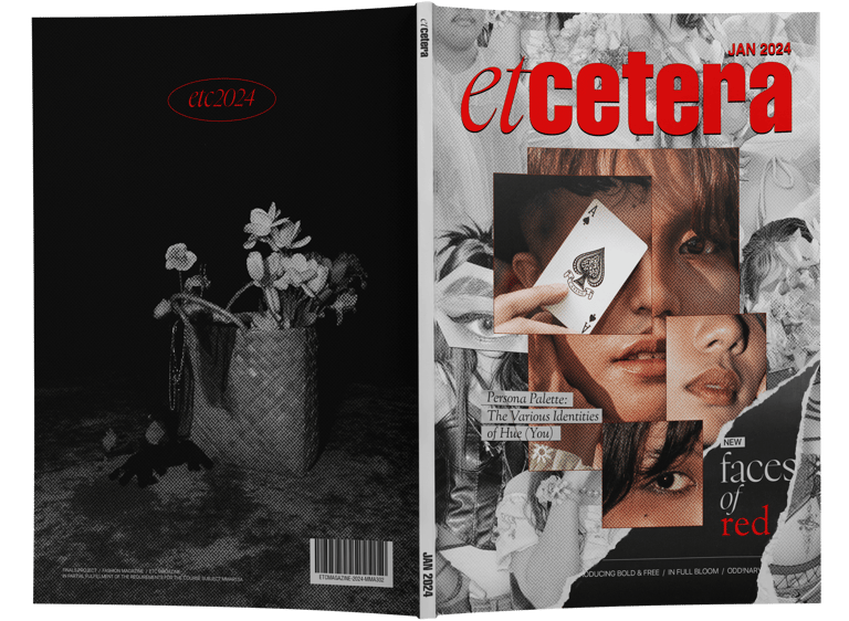 ETCETERA: Faces of Red is a fashion magazine developed as our final project for the Multimedia Publishing course. The publication showcases a range of fashion styling approaches, from a strong and striking appearance to a soft and delicate look, and even to an unconventional one.