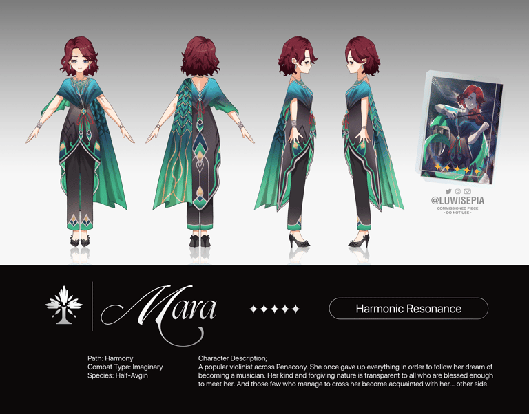 Presented below is a collection of my 4-view Character Reference Sheets featuring original characters that were commissioned by my clients. Each sheet is developed through a thoughtful design process where I focused on building clear silhouettes, researching fashion and elements that fit each character's identity, and ensuring that every detail supports the character's personality and story.