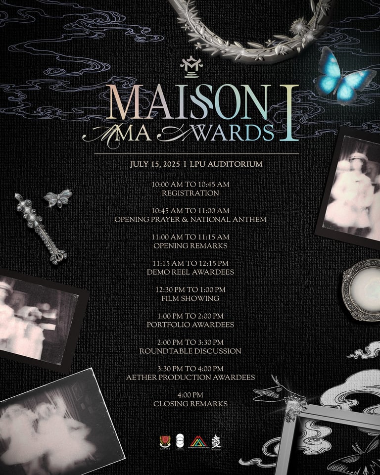"On July 15, 2025, at the LPU Auditorium, the MAISON MMA Awards was held not only to recognize artistry but also to celebrate creative excellence across disciplines. If Walls Could Talk premiered on the big screen, offering audiences a powerful and evocative visual experience. The event concluded with a roundtable discussion, fostering the exchange of knowledge between the present and the future batches."